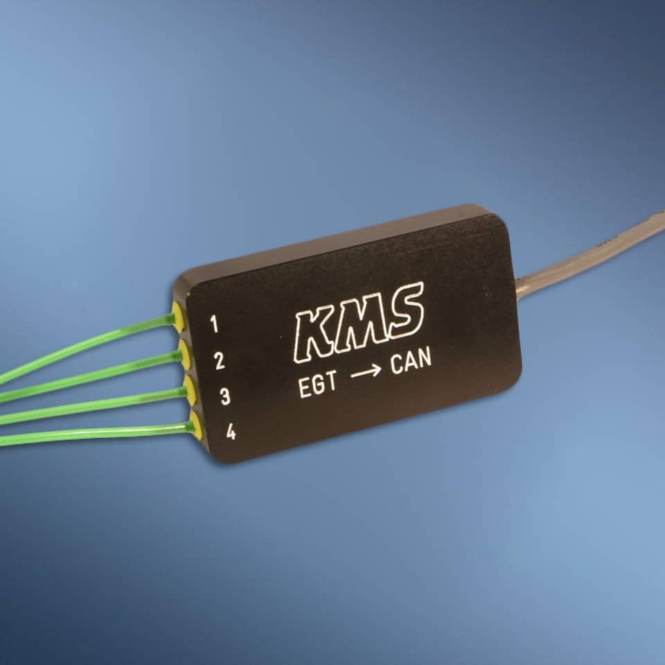 De KMS EGT naar CAN omzetter maakt het mogelijk om 4 temperatuur te meten en weergeven met behulp van vier K-type thermokoppels.