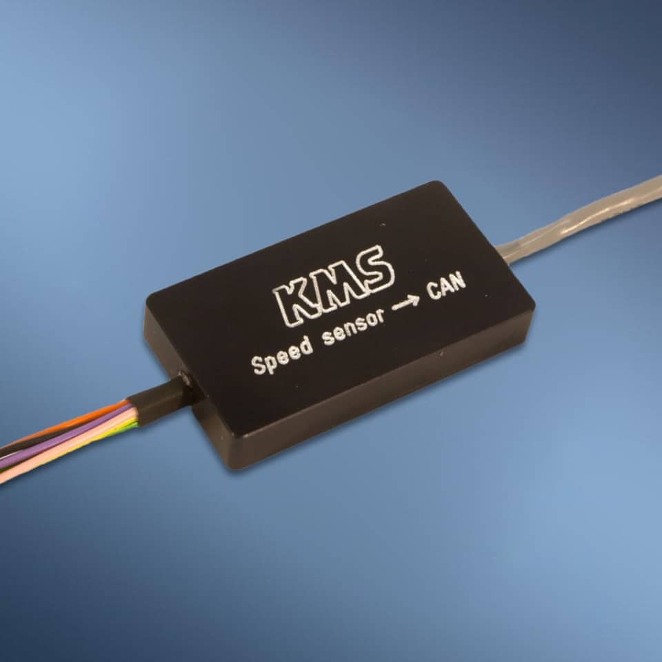 De KMS Speed sensor to CAN converter zet de signalen van vier sensor ingangen (hall en inductief) om naar de CANbus. Hierdoor kunnen de vier snelheidssignalen, snelheidsverschillen en voertuigsnelheid (laagste sneleheid van de vier snelheidssignalen) worden weergegeven op het CAN display en het maakt functies als traction control, snelheids limiters en snelheidsafhankelijke vuldruk en ontstekingscorrectie mogelijk. Deze functies zijn beschikbaar vanaf management softwareversie 4.16 en hoger, en firmware versie 4MA1AI_18 en hoger. Zie voor meer informatie de KMS management MD35 handleiding 4.16 of de KMS Snelheids sensor -> CAN converter handleiding.
