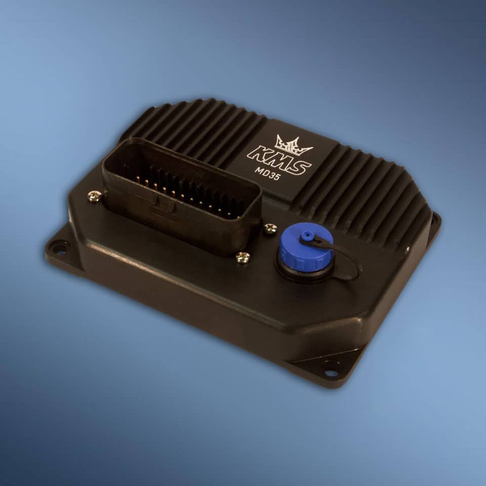 De KMS MD35 ECU is een programmeerbaar motor management systeem dat gebruikt kan worden als een zelfstandig systeem voor het aansturen van “Otto” motoren, of in combinatie met een standaard management systeem. Het neemt de controle over de injectie en onsteking bij ieder gewenst motortoerental, turbodruk of gasklep positie.