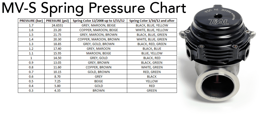 Wastegate veerdruk overzichten: